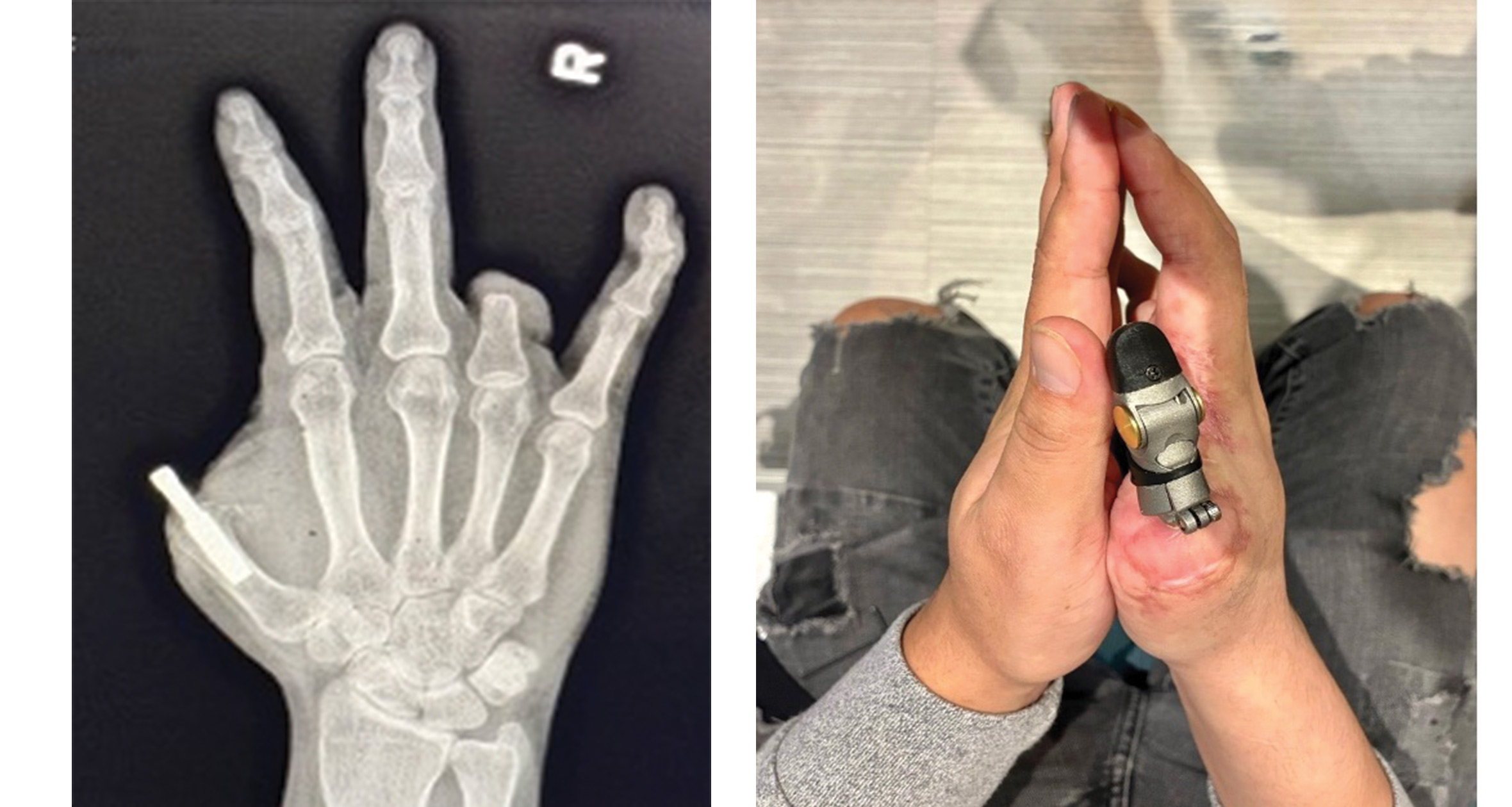 The specialized procedure restored right thumb function via osseointegration surgery with osseoperception.